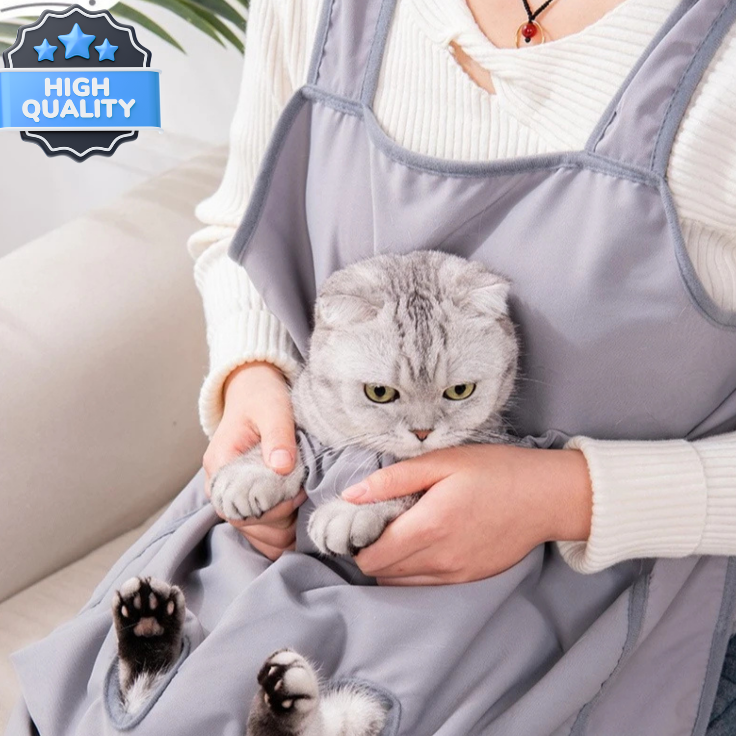 Absolutely! The apron is made with breathable, soft fabric designed to keep your cat calm and cozy.